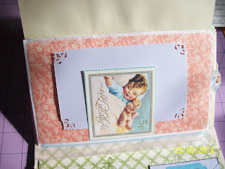 The paper line is "Little Darlings" by Graphic45 and so are the stamps, stickers and die-cut chipboard embellishments. Ribbon is something I bought at Micheal's Craft store. Pink textured tape "Vintage Hip" by Making Memories. Metal buttons from Making Memories. Coin envelopes made out of Recollections Card stock.